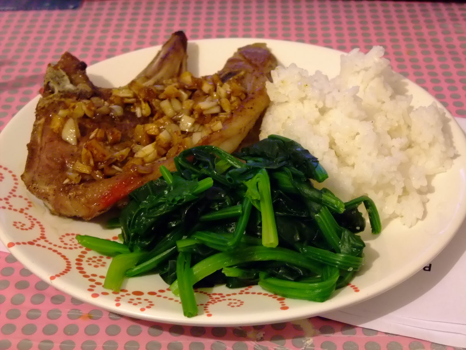 Lamb steak with garlic butter sauce with steamed spinach. I cook more than that though but i totally forget to take picture as i am so busy studying haha.